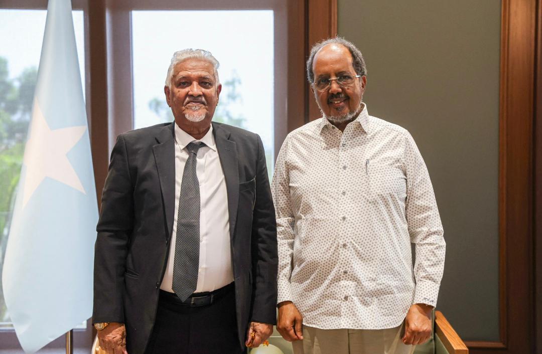 GOOBJOOG NEWS | MOGADISHU: Federal government of Somalia President Hassan Sheikh Mohamud met on Tuesday with former Puntland vice president Ahmed Elmi Osman, known as Ahmed Karaash, to discuss humanitarian and political developments in northeastern Somalia, the presidency said.
